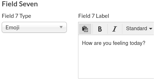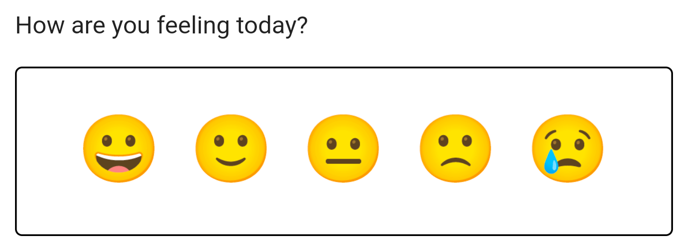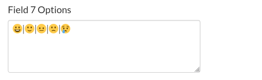 Put your emojis in the options field, seperated by a | character, for example, like '😀|🙂|😐|🙁|😢'.
